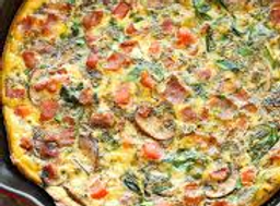 - Whisk the eggs once more and pour the egg mixture over the mushrooms and bacon.