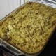 - Pour the dressing into a 9x13 casserole dish and bake at 350 degrees for an hour. If the dressing is not browned on top or firm to the touch in the center, cook the dressing a bit longer.
