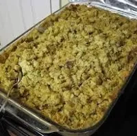 Pour the dressing into a 9x13 casserole dish and bake at 350 degrees for an hour. If the dressing is not browned on top or firm to the touch in the center, cook the dressing a bit longer.